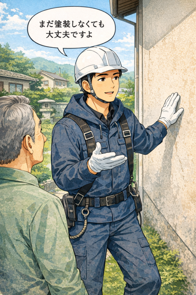 正直に言います。今すぐ塗装しなくていい家の特徴 郡山市・いわき市・白河市・福島市・那須塩原市のみなさん、こんにちは! 外壁塗装・屋根塗装専門店の郡山塗装です! 今回のブログを執筆させていただきます安田です! 外壁塗装の相談を受けていると、「そろそろ塗装した方がいいですか?」「築10年だからやらないとダメですよね?」と聞かれることがよくあります。 ですが、私たちプロの塗装屋は、すべての家に今すぐ塗装が必要だとは考えていません。正直に言えば、「まだ塗らなくていい家」も、実はたくさんあります。 今回は、「今すぐ塗装しなくていい家の特徴」をお伝えします。 ① 外壁を触っても白い粉がほとんど付かない家 外壁を手で触ったときに白い粉が付く現象を「チョーキング」と言います。これは塗膜が劣化しているサインの一つですが、粉がほとんど付かない場合は、塗膜がまだ機能している状態です。 ・少し色あせはある・見た目は古く感じる こういった状態でも、防水性が保たれていれば急ぐ必要はありません。見た目だけで判断せず、機能が残っているかが重要です。 ② ひび割れが「ヘアクラック」程度で止まっている家 外壁のひび割れには種類があります。髪の毛のように細いひび割れ(ヘアクラック)で、内部まで達していない場合、すぐに雨漏りや構造トラブルになる可能性は低いです。 もちろん放置はおすすめしませんが、 数が少ない 幅が0.3mm以下 深さが浅い このような場合は、次回塗装まで経過観察でも問題ないケースが多いです。 ③ コケ・カビが部分的で軽度な家 北側や日陰に少しコケが生えているだけで、「もうダメですよ」「塗装しないと危険です」と言われた経験がある方もいるかもしれません。 ですが、コケやカビは立地条件によるものが大きく、必ずしも塗膜の寿命とは直結しません。軽度であれば、洗浄や簡易的なメンテナンスで対応可能なこともあります。 ④ 屋根・外壁ともに反りや浮きが見られない家 塗装が本当に必要な状態になると、 サイディングの反り 目地の著しい劣化 塗膜の浮き・剥がれ といった構造的なサインが出てきます。 これらがなく、外壁材自体がしっかりしている場合は、「今すぐ塗装しないと危険」という状態ではありません。 ⑤ 「築〇年だから」という理由だけで勧められている家 築10年・15年という数字は、あくまで目安です。実際の劣化スピードは、 日当たり 風当たり 立地環境 使用されている外壁材・塗料 によって大きく変わります。 築15年でも状態が良い家はありますし、築8年でも劣化が進んでいる家もあります。 年数だけで判断するのは、プロではありません。 プロが「まだ大丈夫です」と言う理由 私たちが「今回は見送ってもいいですね」とお伝えするのは、決して仕事を断りたいからではありません。 不要な工事を勧めたくない 塗装の“一番いいタイミング”でやってほしい 長い目で見て家を守りたい こうした考えがあるからです。 塗装は安い工事ではありません。だからこそ、やらなくていい時期に無理にやる必要はないと考えています。 まとめ 今すぐ塗装しなくていい家には、共通点があります。 塗膜がまだ機能している 劣化が軽度で止まっている 構造的な問題が出ていない 本当に信頼できる塗装屋は、「今すぐやりましょう」だけでなく、**「今回は様子を見ましょう」**とも正直に言います。 塗装を検討する際は、「本当に今必要なのか?」を一緒に考えてくれる業者かどうかを、ぜひ見極めてください。 郡山塗装は外壁塗装・屋根塗装・雨漏り専門店です。創業から90年以上、郡山市・いわき市・福島市地域密着で多くの信頼と実績を 積み重ねてきた塗装のプロフェッショナル集団です。 地域密着だからこそ実現できる適正価格で高品質な塗装をご提供いたします。 これまで積み重ねてきた信頼と実績に恥じぬよう、 誠心誠意対応させていただきます。 ■郡山塗装ではお客様の声から生まれた塗装メニューがあります! ■創業90年以上の実績をぜひご覧ください! ■郡山塗装が90年以上選ばれ続けてきた理由はここにあります! (2026.01.19 更新) 詳しく見る スタッフブログ