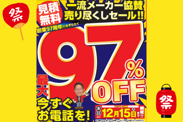 福島市・伊達市・伊達郡・二本松限定!|年内ラストチャンス!売り尽くし祭【12月15日まで開催】