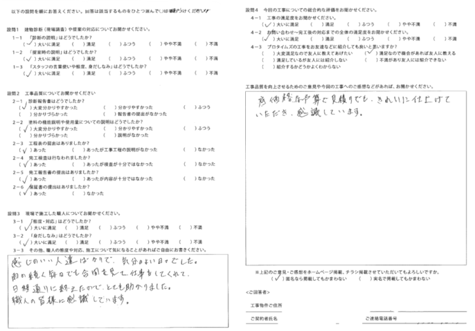 低価格な予算で見積りでも綺麗に仕上げていただき、感謝しています。
